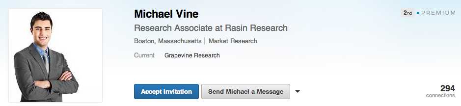 Here’s just a small sample of the invitations that have been making the rounds.It’s disappointing: you’d think you could trust LinkedIn premium members to be real people, but this photo is for sale all over the Internet. Of course, it’s always possible that this is perfectly legit. Maybe Michael was a model before becoming a research associate.