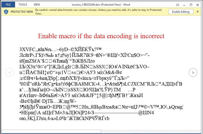 With Locky however, the recipient is asked to enable editing within the document, which allows the malware to run. And it has been pretty effective in persuading the innocent reader to click on the yellow “Enable Editing” button.