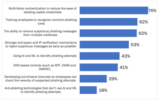 AI is becoming a must-have in preventing modern complex ransomware attacks. AI-enabled email security, such as Integrated Cloud Email Security (ICES), offers a substantial benefit over the conventional secure email gateways built into productivity suites such as Microsoft 365. In terms of organizational views on the use of AI in tackling phishing and ransomware, research from Osterman shows that companies want much more use of AI/ML than currently deployed: