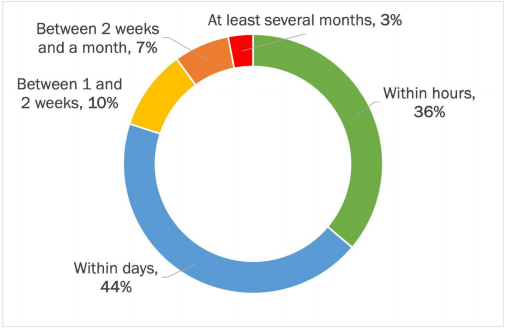 Patching software and hardware is a cybersecurity prevention 101 exercise. Cybercriminals use vulnerabilities in systems and applications to exploit pathways into sensitive parts of a network. Patching policies should reflect ransomware threats and patching cadence should Threat actors go on the offensive quickly. Still, it can take organizations days, weeks, or months to counter-defend their networks. Research from Osterman found that 36% of respondents could patch systems and applications within hours of discovering new vulnerabilities, and 44% could do so within days. The remainder took one week and several months, a cadence representing a significant threat.