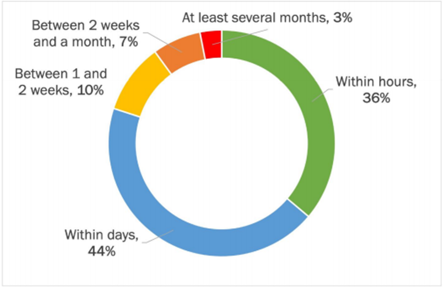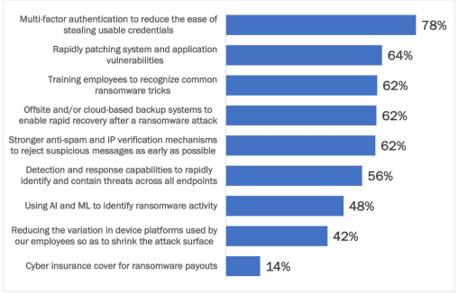 As mentioned previously, the average time to mitigate the impact of a ransomware attack is 24 days. Pingdom has estimated the cost of downtime to be roughly $25,620 for SMBs and $540,000 for enterprises per hour. Fast response to a ransomware attack can save a company money. In terms of ransomware response tactics, key takeaways from a 2021 Osterman report show that: