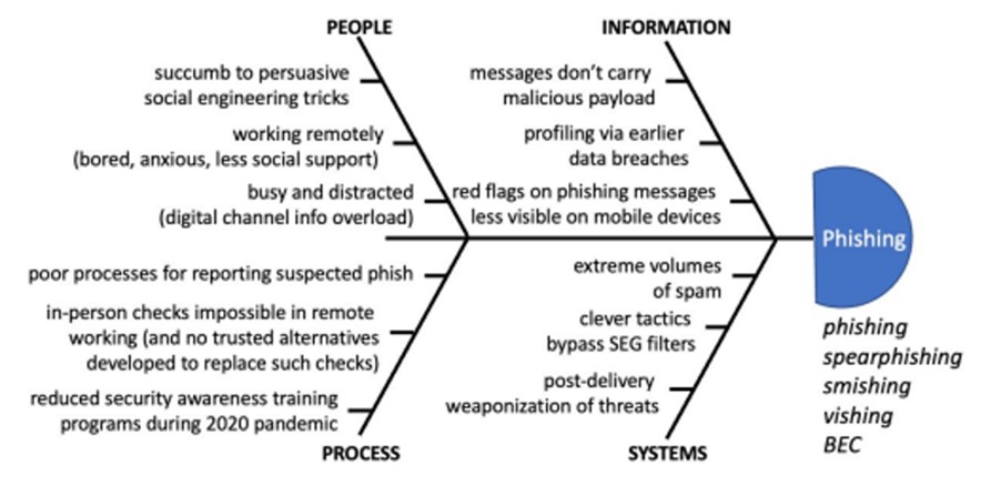 Phishing continues to be the vector of choice in initiating a ransomware attack. Email phishing and the targeted version, spear phishing, are the most common methods of starting a ransomware attack. Often, the phishing exercise steals privileged login credentials and allows the attacker access to the network. Alternatively, ransomware can be delivered in an infected attachment in an email. Recent research from Osterman pinpoints the causes and contributors to phishing attacks. The most noticeable element of phishing and ransomware is that cybercriminals manipulate human behavior, work environment, and events to increase their chances of success. The phishing emails are also being adjusted to evade conventional secure email gateway filters.