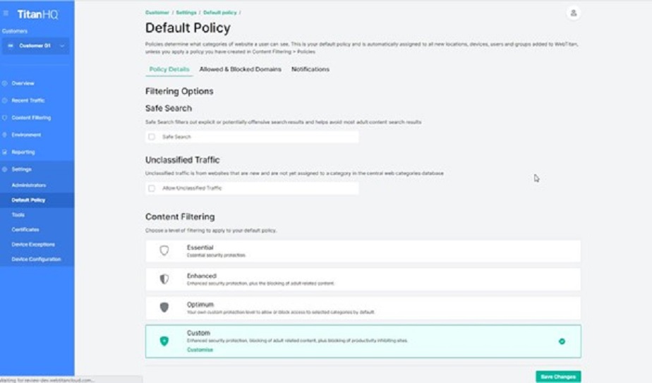 • The ability to Inherit the Allowed & Blocked Domains from the Customer Default Policy.