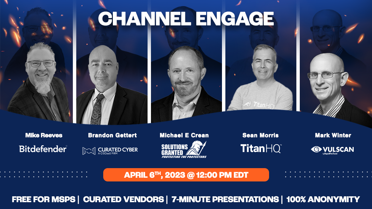 Join TitanHQs CTO, Sean Morris at the April Channel Engage, focussing on cybersecurity. TitanHQ will be joined by four other vendors to hold a LIVE product comparison.