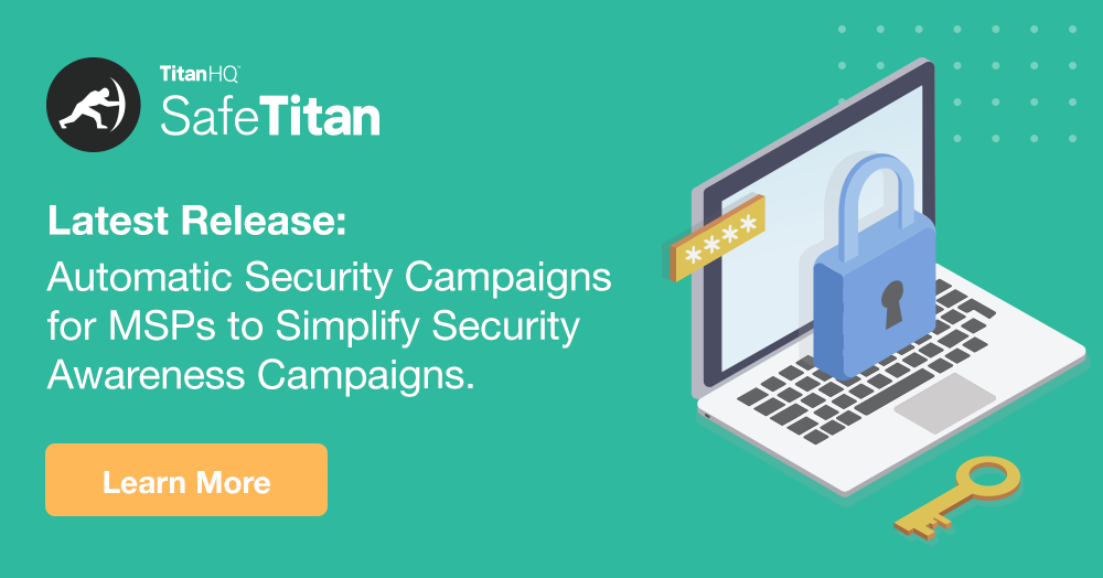TitanHQ, leading cybersecurity platform delivering layered security, is delighted to announce a new security training feature in its Security Awareness Training solution, SafeTitan. Titled 'Auto Campaigns', this feature allows MSPs to create an annual set for phishing simulation campaigns within SafeTitan in minutes, helping managed service providers (MSPs) streamline the security campaign planning process.