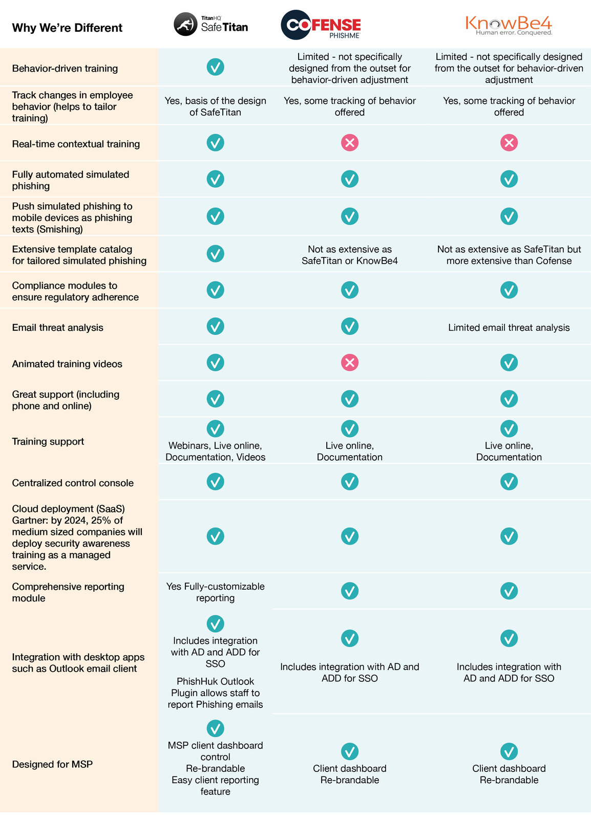 Why chooseTitanHQ SAT over alternatives Cofense and KnowBe4