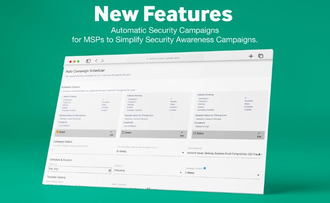 Auto Campaigns allow MSPs to run always-on phishing campaigns. It enables the creation of an annual phishing simulation campaign in minutes, streamlining the security campaign planning process and saving time and resources.